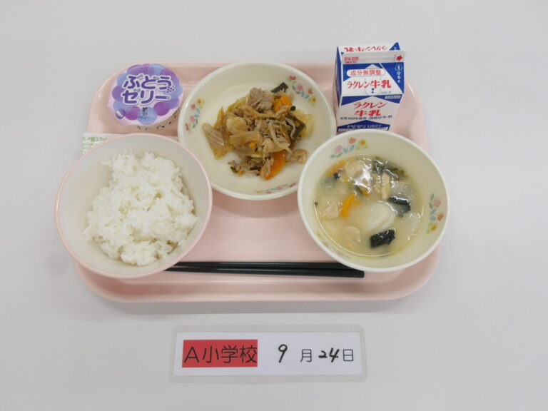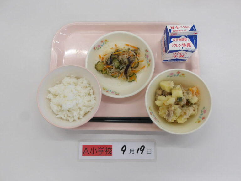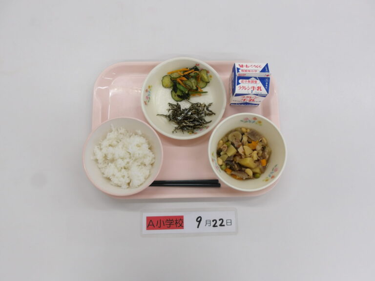ごはん/牛乳/利休汁/納豆煮/キャベツのひじき和え