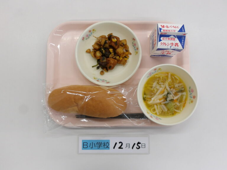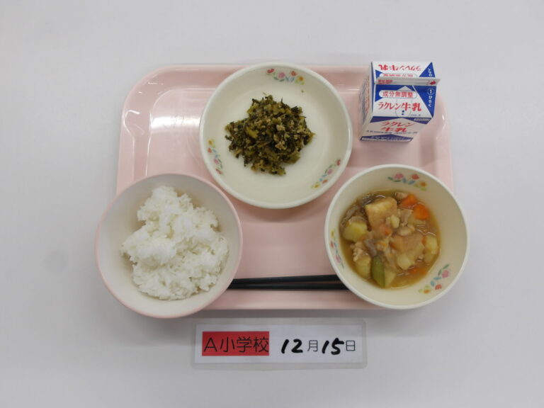 ごはん/牛乳/うま煮/高菜そぼろ炒め