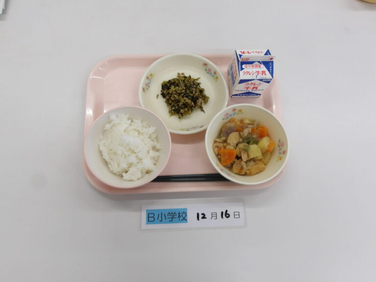 ごはん/牛乳/うま煮/高菜そぼろ炒め