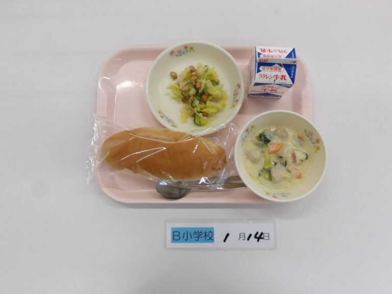 コッペパン/牛乳/冬野菜のクリーム煮/かみかみサラダ