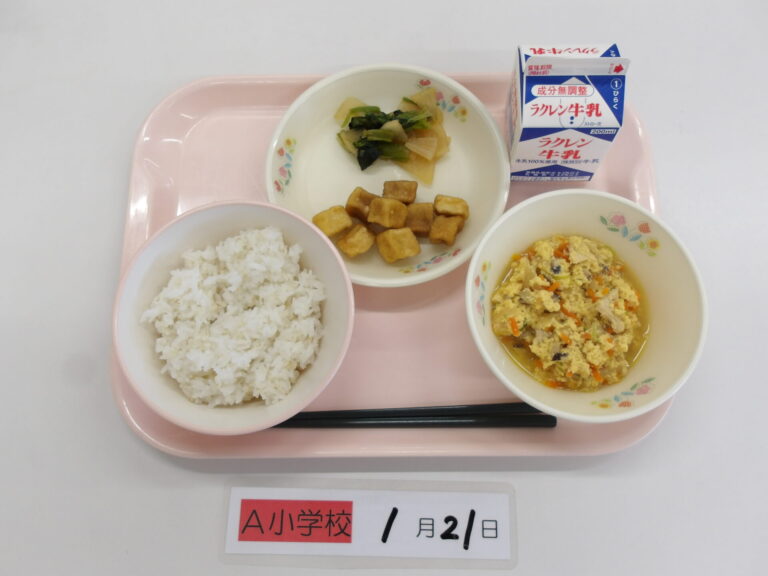 麦ごはん/牛乳/親子丼/高野豆腐の揚げ煮/小松菜の和え物