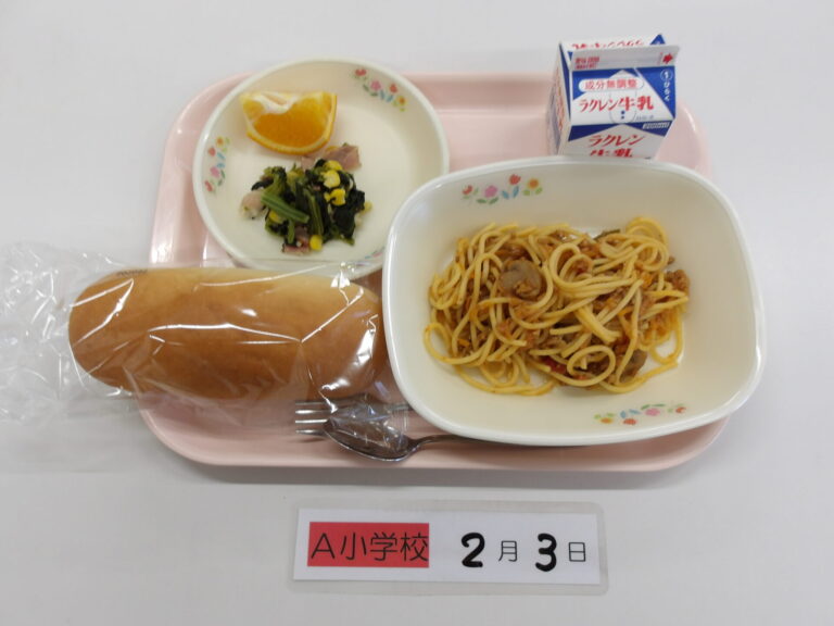 小コッペパン/牛乳/スパゲッティミートソース/ほうれん草のソテー/いよかん