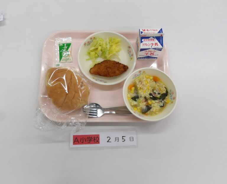 パーカーハウスパン/牛乳/ABCスープ/白身魚フライ/ゆでキャベツ/タルタルソース