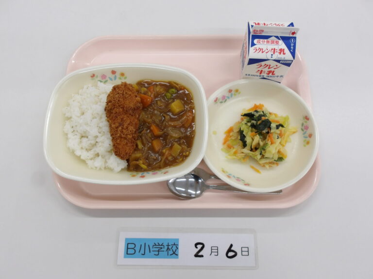 麦ごはん/牛乳/カツカレーのルウ/カツカレーのカツ/アーモンドサラダ