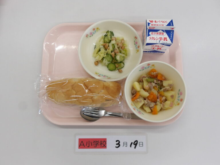 パインパン/牛乳/じゃがいものベーコン煮/かみかみサラダ