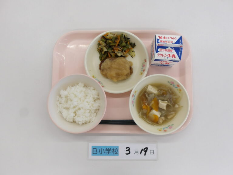 ごはん/牛乳/鶏ごぼう汁/おろしハンバーグ/いんげんのしそひじき炒め