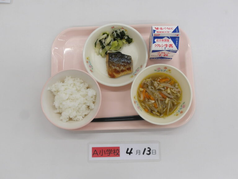 ごはん/牛乳/沢煮椀/さばのみそ煮/ほうれん草とキャベツの酢の物