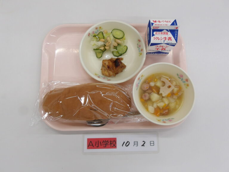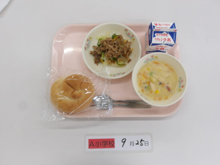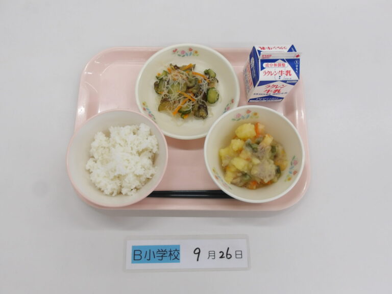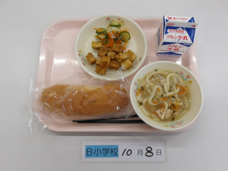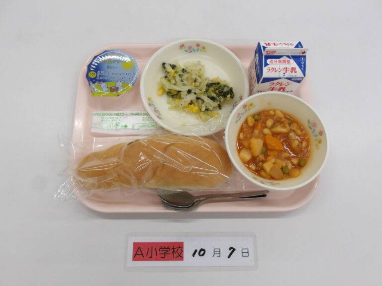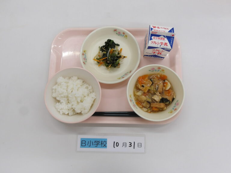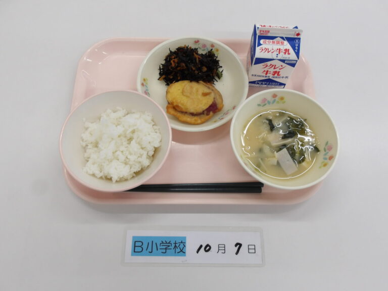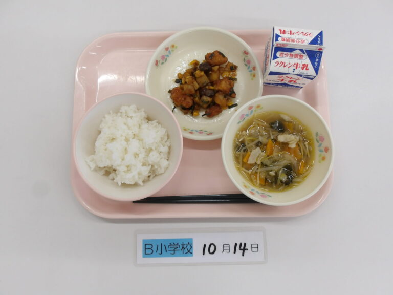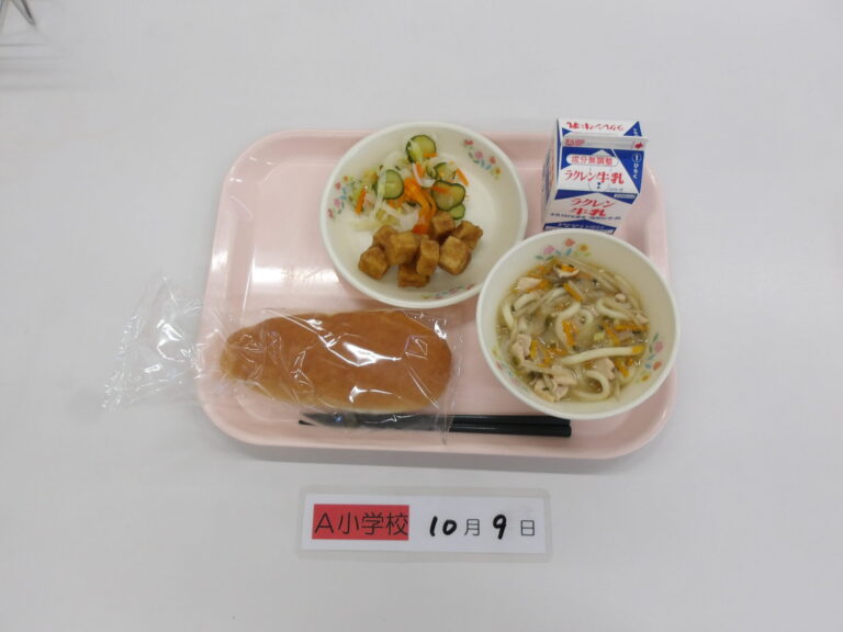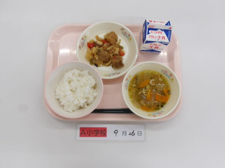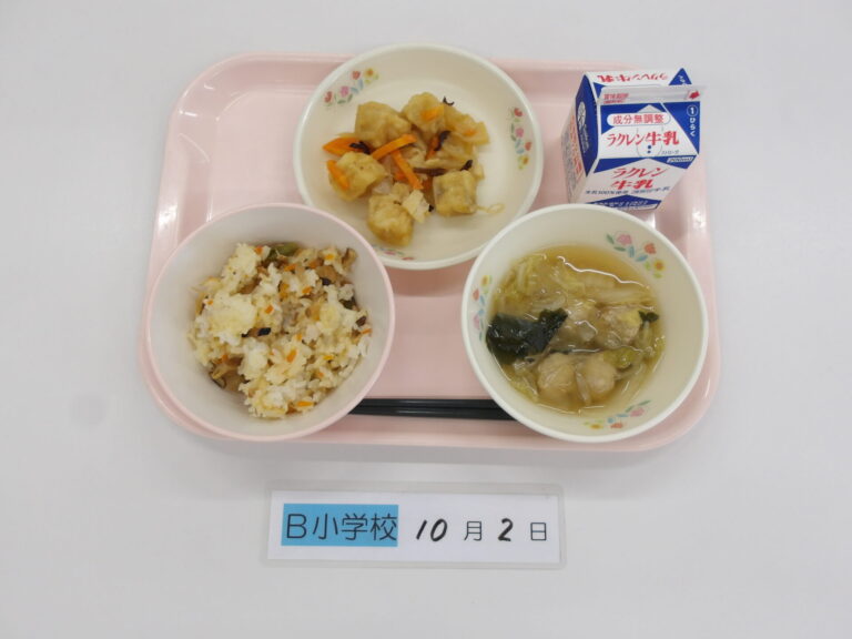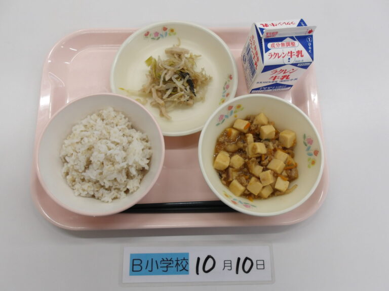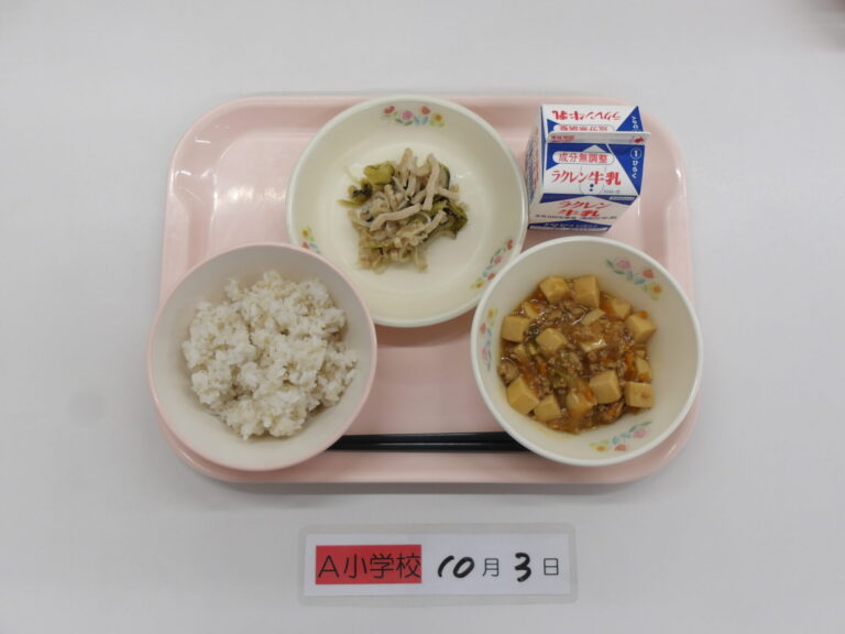 ごはん/牛乳/厚揚げの中華煮/ほうれん草ともやしのナムル