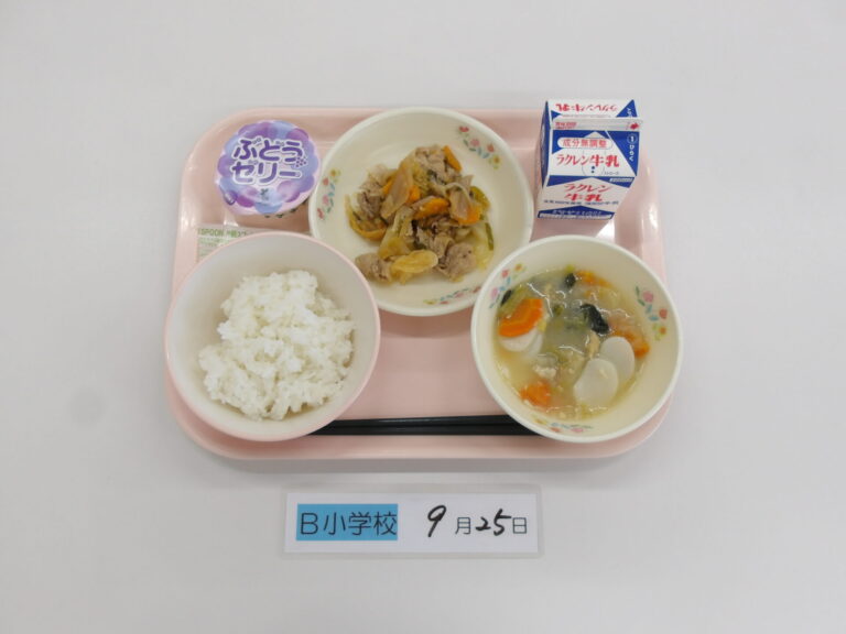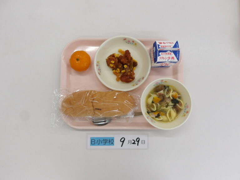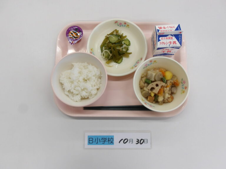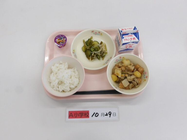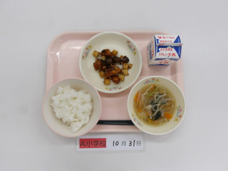 ごはん/牛乳/中華スープ/鶏肉とレバーの揚げ煮