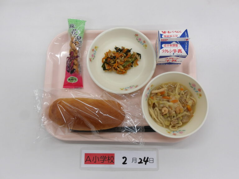 米粉パン/牛乳/海鮮ちゃんぽん/野菜の中華炒め/マファール