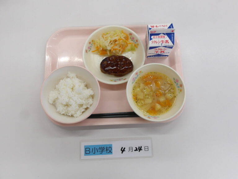 ごはん/牛乳/ポテトスープ/照り焼きハンバーグ/コールスロー